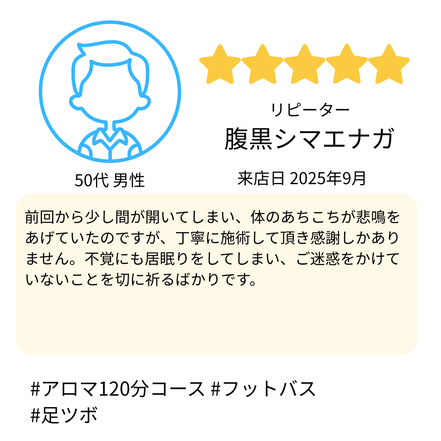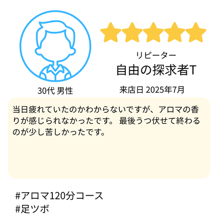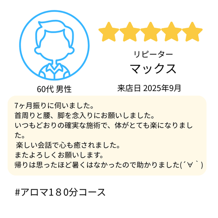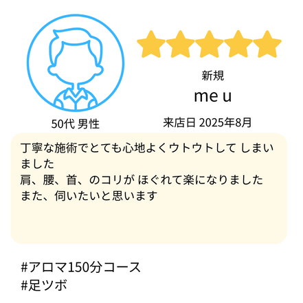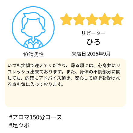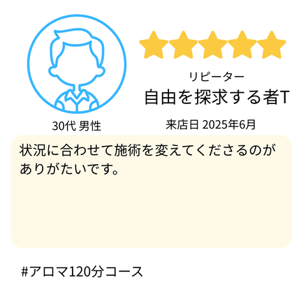 Jam様のお体に合わせて、無理のない施術でしっかり整えさせていただきます。